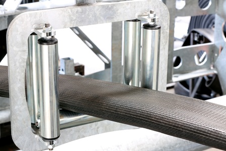 Die rotierende Stahltrommel besitzt eine Edelstahlachse, die in einem flankierend angebrachten LFD-Stehlagern endet. An dieser Stelle lagert das Gewicht der schweren Stahltrommel und genau dort werden die hohen Zugkräfte beim Einzug der am Boden reibenden Rohre aufgefangen. Auf Robustheit ausgelegt sind auch die Dreifach-Rollenführungen des Spulwagens, weil beim Aufspulen des Rohres enorme Seitenkräfte entstehen. Es muss über die gesamte Breite der Trommel exakt aufgewickelt werden, was extrem schwierig ist, wenn es seitlich in der Fahrspur abgelegt wurde. In der Buchse des Spulwagens sind Rillenkugellager von LFD verbaut. Sie unterstützen die Funktion des Führungsbolzens, der der Nut der Spindelwelle folgt. Die Spindelwelle wiederum ist beidseitig mit funktionsgenau angepassten LFD-Flanschlagern gelagert, damit ein störungsfreier Betrieb gewährleistet ist.